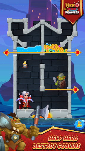 Hero Rescue - Pull The Pin you will help the hero to rescue the princess from danger. Pull the pins and complete the task.