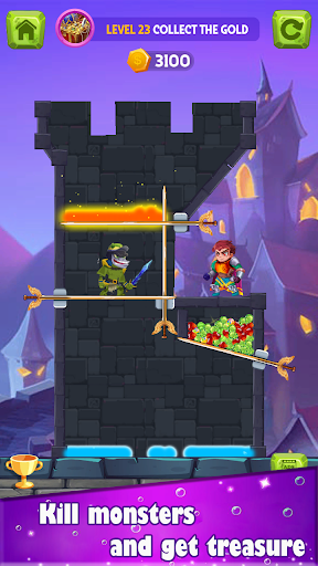 If you're looking for puzzle adventure games, this game is for you, and the best adventure is waiting for you. We need heroes to solve all tasks, avoid traps and save our beautiful princess from monsters. You have to pull out the sword correctly and with a little bit of luck. Beautiful princess, a lot of treasure is waiting for you.