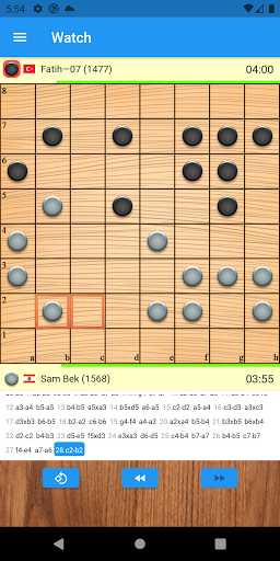 7. Move list. Investigate games by forwarding and rewinding moves.
