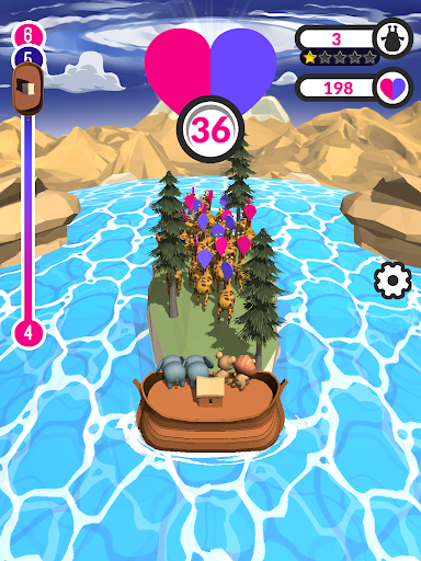 Save different types of animals from the approaching flood with the "match animals" game. Collect rescued animal mates on your own island. At each stage, add a new type of animal to your collection and multiply their numbers.