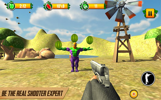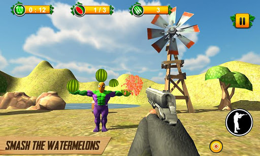 You can meet your shooting ambition and improve your focus by shooting watermelons. Watermelon shooter is a gun simulator game for free to improve your focus and shooting skills level. Aim the watermelon; press trigger and shoot the watermelon. Enjoy the real smash and bursting out of it. In this fruit shooting gun simulator game you will crush fruits by focusing on your target.