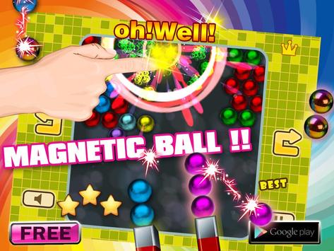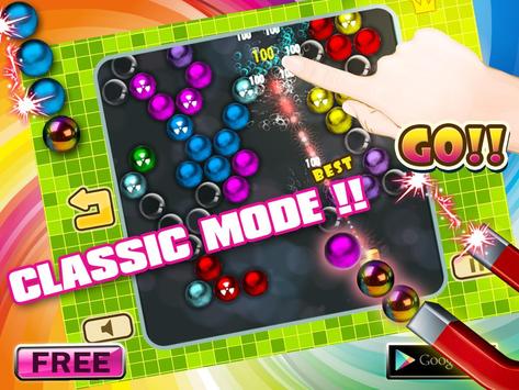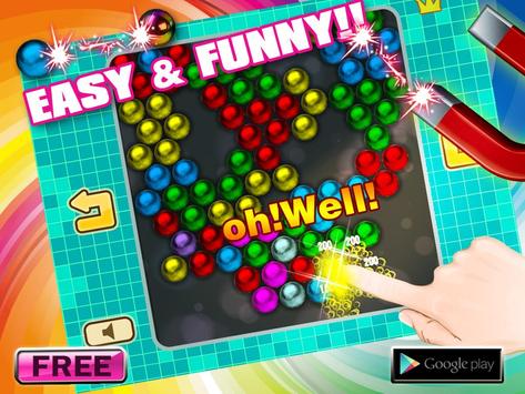Press the screen where you want to shoot the ball. The new line appears in the glass after several balls shot (amount depending on the level). Combine three or more balls in one line to destroy them. You get coins for each line of four and more balls. You can exchange the coins for special balls to use in difficult situations (or just for fun). You can get combo bonus for destroying of several groups of balls within 1.5 seconds.