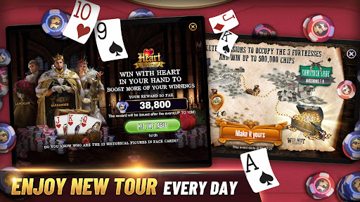 Want to show off your unique personality? Upload a photo to create your own custom avatar, and choose from different themed avatar frames, table skins, and card skins to show off your unique “Poker Bang” style. Let Poker become an art!