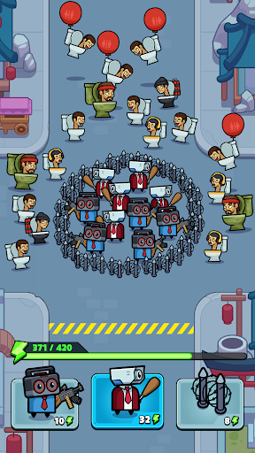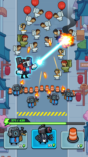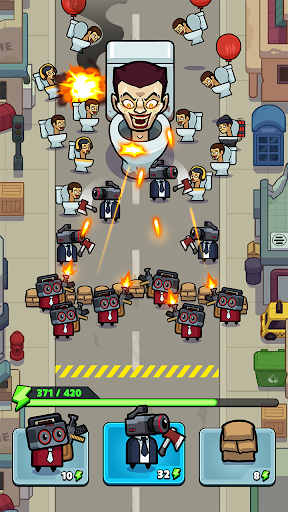 You will visit a post-apocalyptic world in Zombie Idle Defense where the majority of people have evolved into toilet zombies. Help camera head officers who must defend themselves from endless waves of enemies.