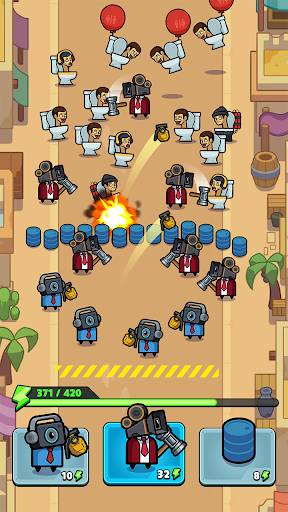 Safeguard the crowded metropolis from invasion! Put an end to this toilet conquest and establish one mob control and base defense of the city, camera head officer, contact all the soldiers for assistance, quickly clone armies, and let's be cops, push them all!