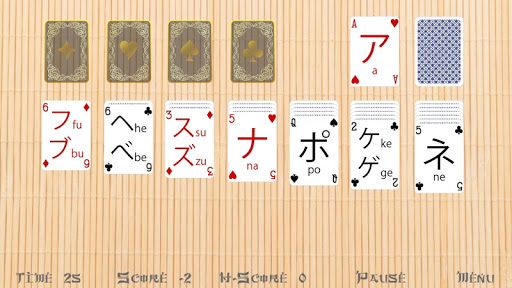 So you wanna learn Japanese. Hiragana and Katakana Solitaire is the best app to start. The easiest way to learn Hiragana and Katakana for the Japanese exam Noken 5 or jlpt N5! Have fun!