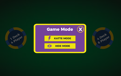 Hide Mode: The player to the dealer’s right selects a card placing it to table face down which will be declared as trump suit for that play.