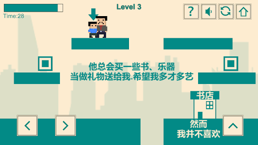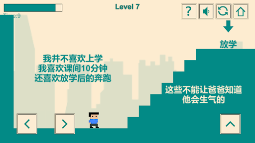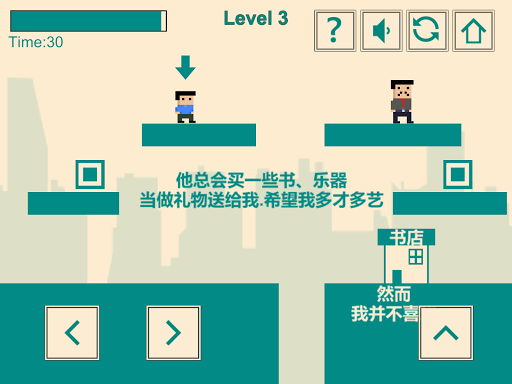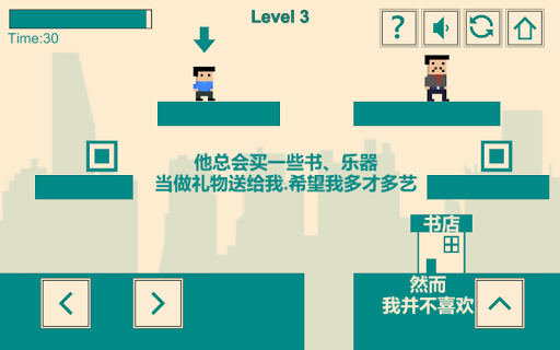 《游戏人生:我的超级英雄》讲的是一个孩子从小学到大学跟他父亲的故事,气氛温馨,稍带一点益智解密的元素,整个游戏会通过文字描述讲述他们之间的故事。 每个父亲都是孩子心中的超级英雄,只有当你离开安逸的家,才会深刻的明白那些年为你遮挡风风雨雨,包容你所有的天真与任性的父亲。You are my Superman。 游戏特点: 1、30个关卡,每一关的玩法都是新鲜的 2、简约的像素风格人物带来不一样的清新体验 3、既是一款游戏也是一个迷人的故事