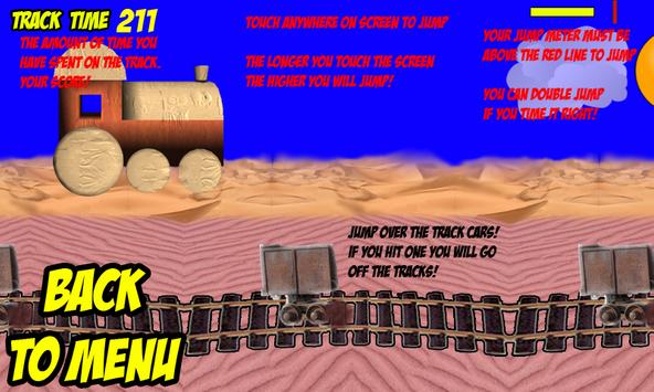 The game is simple! It is up to you to keep the train on the track for as long as possible. Your score gets higher for every second you spend on the tracks. Hold down the screen to jump. Hold down the screen for longer to jump higher. Beware though... your jump meter must be filled up for you to jump. If you time it right you can double and triple jump!