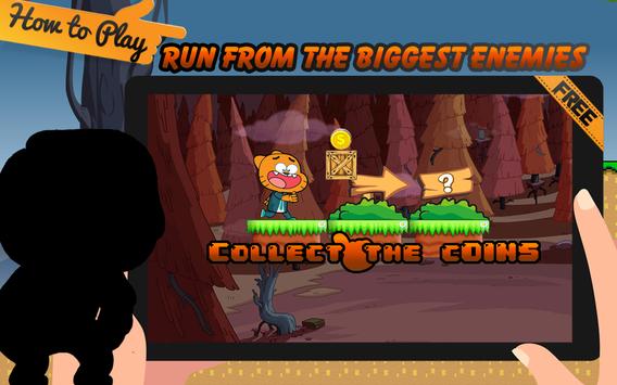 Super Gambol adventure is easy to play for all the kids and adults your objective is to help gambol the cat to collect as much money as you can and fun run from the trap, in a world full of adventure and obstacles you are the only hero that you can make it.