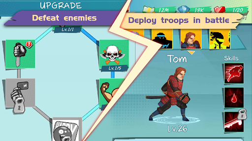- Recruit, train and deploy your hero teams