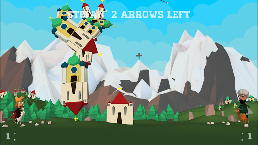 Check whose player's turn it is and give them the device. Tap and hold the screen and drag in the opposite direction of where you want the arrow to fly, much like you would shoot a bow. Let go and see the arrow fly until it stops mid-air (time stops), and let the next player take their shot. Time continues and the arrows fly and make churches. After 15 total arrows, the round is complete and the highest church wins.