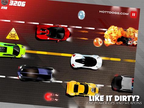 Red Fury: A Fast Slot Car Road Rush Speed Race is an endless, 2D game where you must maneuver your car between lanes as you pick up precious coins that can be exchanged for upgrades. There are power ups that allow you to blow up the everyone in sight or shields to protect you from bumper damage.