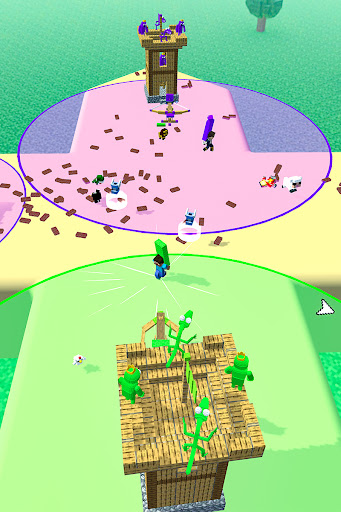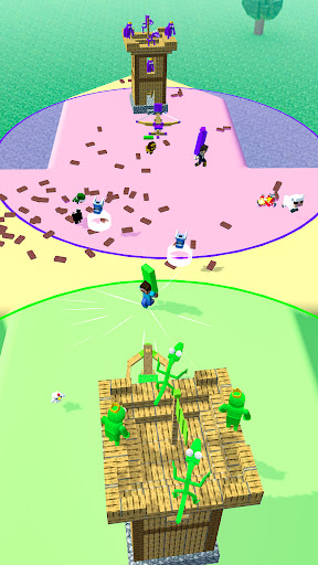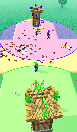 - Starting with a small tower, collect bricks and bring it back to power-up army and tower