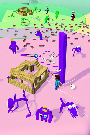 Go collect as many bricks as you can and become the last survivor, build up your rainbow monster army and at the same time, defense your craft tower. Remember, in the most deadly arena battle, only the one collect the most bricks and build tower at the fastest speed, can become the last survivor and climb to the top on the leaderboard.