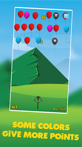 Practice your archery skills, pop as many balloons as you can. But avoid the black balloons with the Jolly Roger (crossbones), if you pop one, your game is over.