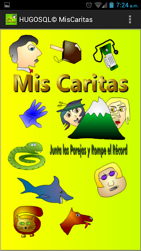 Mis Caritas es un juego para todas las edades, sencillo de aprender y fácil de usar. Sólo tienes que anotar tu nombre de jugador y buscar de cada imagen su pareja en el menor tiempo posible. Al terminar, se guardará tu tiempo y podrás buscarte en el registro de líderes. Mis Caritas es un juego que ocupa poco espacio y recursos de tu celular y tableta, ideal para pasar el tiempo sin complicaciones.