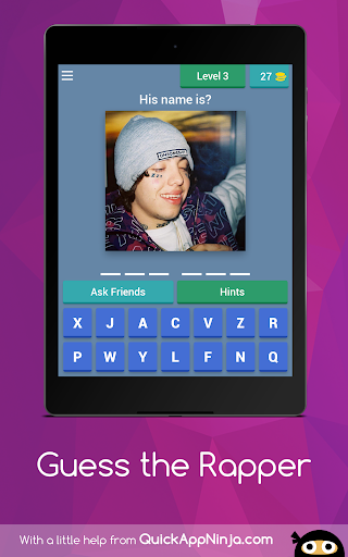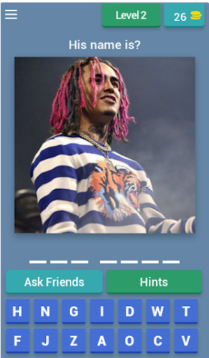 This game is about modern rappers! If you think your're a big fan of your favorite rappers try guess them by photos or their acctions. XXXTenacion Lil Pump 2PAC LIL XAN And many more rappers!