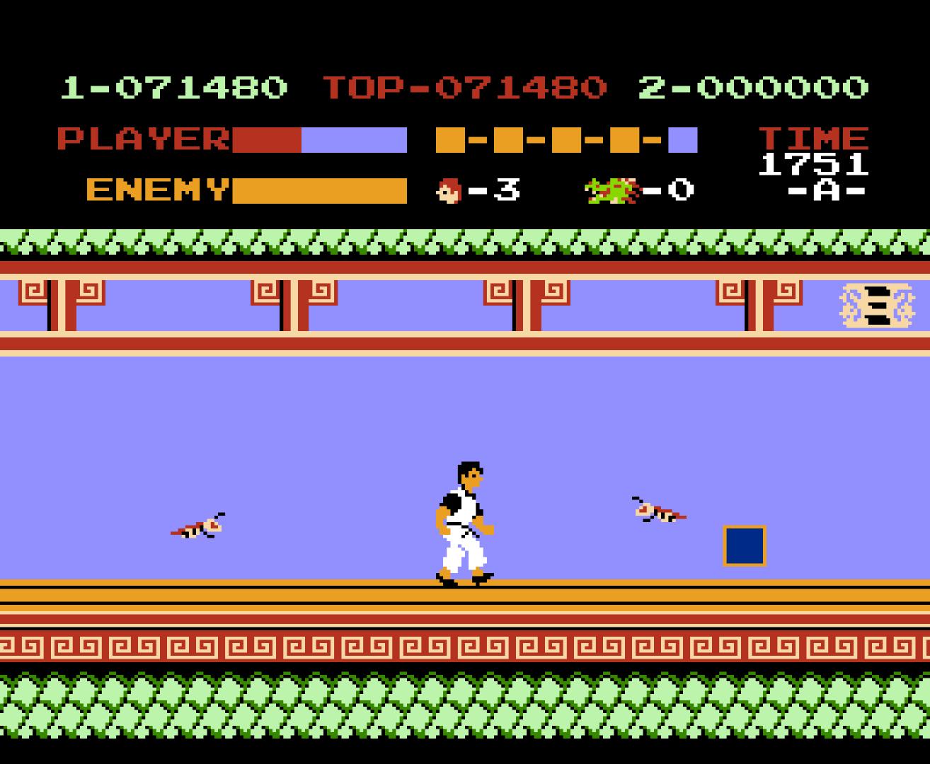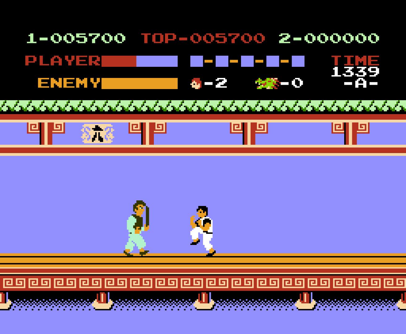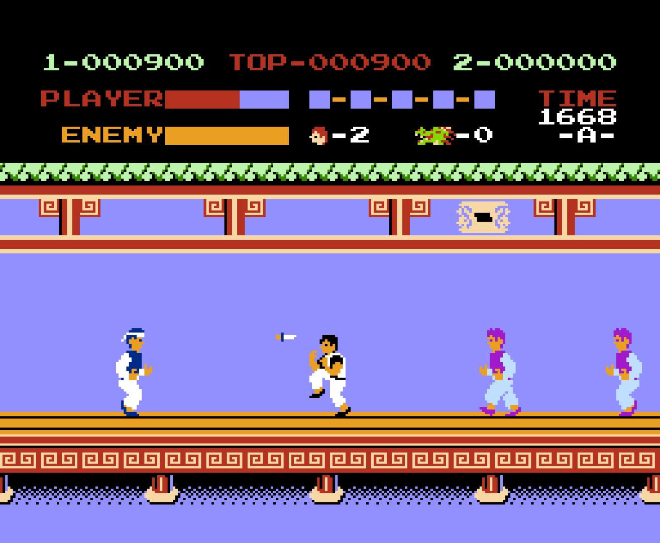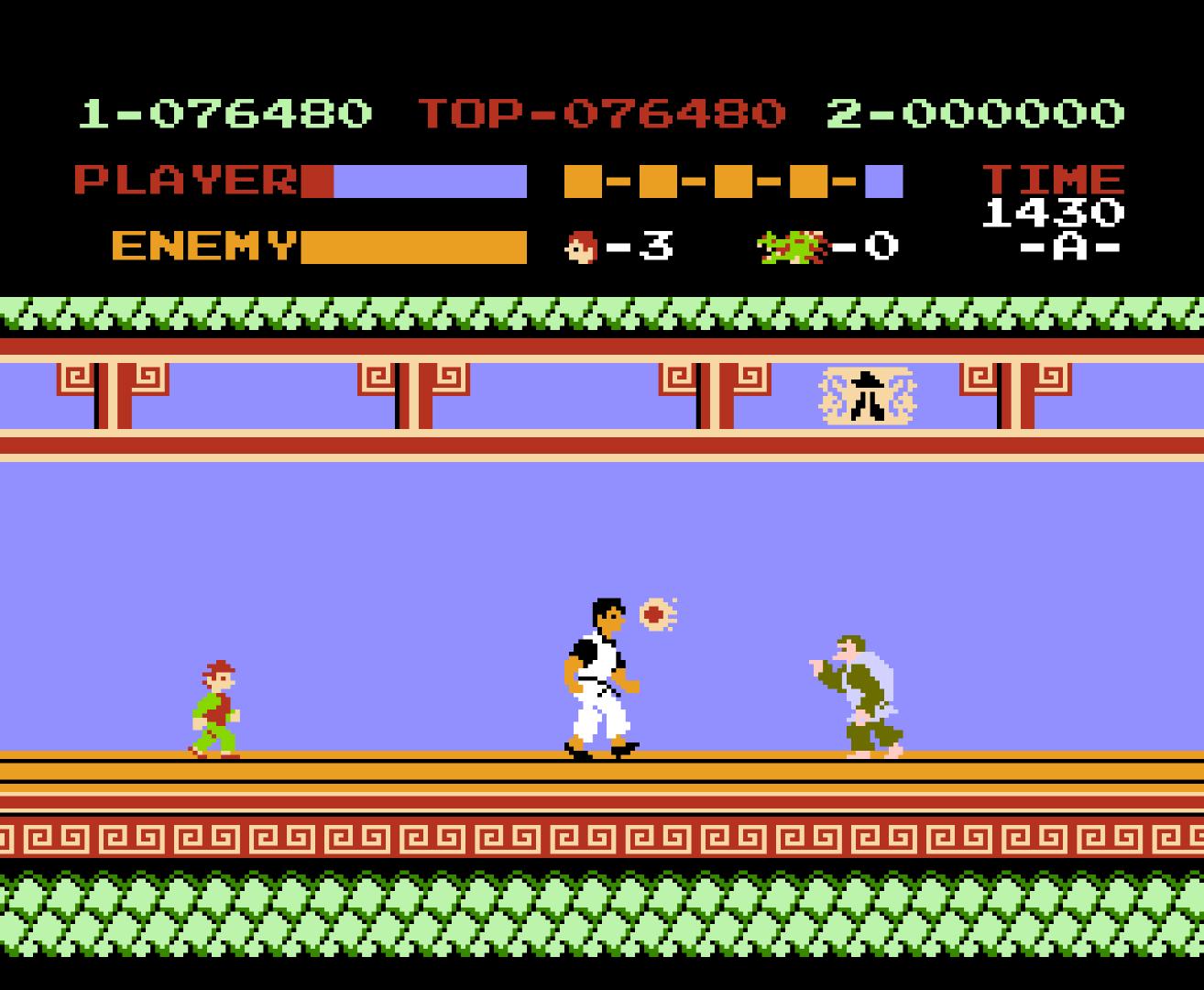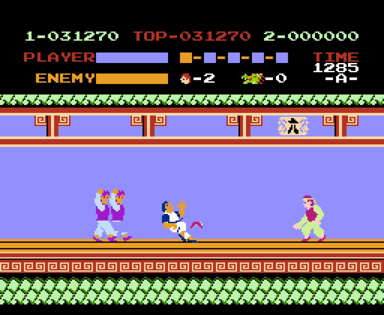 You are a "kung fu" master and girlfriend is kidnapped by a rival gang. They're holding her captive on the fifth floor of the clan's dojo. You must fist, jump kick, fight your way to the top floor, and defeat the clan leader in order to rescue your girlfriend. It's not going to be any easy battle. You're going up against fighting masters themselves, especially some who are equipped with dangerous weapons/sidekicks. Fend off each of the minions so that you may rescue your girlfriend, and defeat the people who have angered you so greatly.