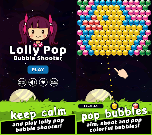 The objective of the game is to match and pop bubbles and complete the puzzles. Matching at least three colors will burst the bubbles. Inspired by classic bubble shooter gameplay, served with the sweet taste and beauty of Lollipop we all love, Lolly Pop Bubble Shooter delivers a cute, calm, and addictive bubble shooting game for you to play.