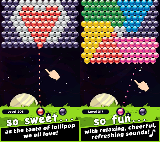 Bubble shooter game meets Lollipop in this new, cute and super-addictive puzzler. Shoot bubbles in space to help LOLLY solve hundreds of special designed levels. Help LOLLY pop all bubbles and overcome challenges during bubble shoot in her mission to discover the secrets of the lollipop galaxy!