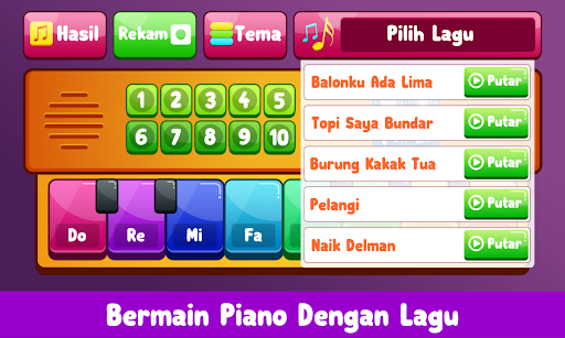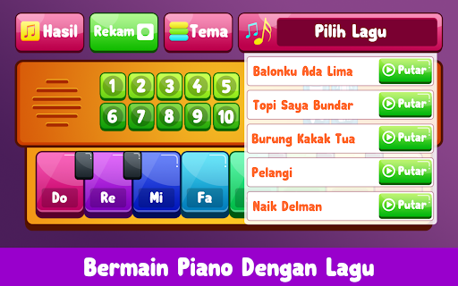 Ang pag -aaral ng piano at musika para sa mga bata ay isang application na partikular na idinisenyo para sa mga batang wala pang limang, paud, kindergarten o elementarya. Ang application na ito ay may mga sumusunod na tampok: > -Magtala ba kapag naglalaro ng piano xilophone