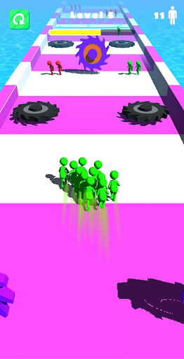 You have to collect as many colored people as possible to create a crowd, it will help you at the end of each level to destroy the castle and pass the level. Beware of obstacles, they take away your colored people and make your crowd smaller, which may not be enough to destroy the castle.