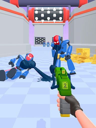 Unlike in other gun shooting games, you’ll get the most powerful weapons of all galaxies! Take a blaster that shoots gum or a pistol with ropes instead of bullets in our top war battle game. These futuristic shooting guns will help you tie the robots to hurdles and tear them all down!