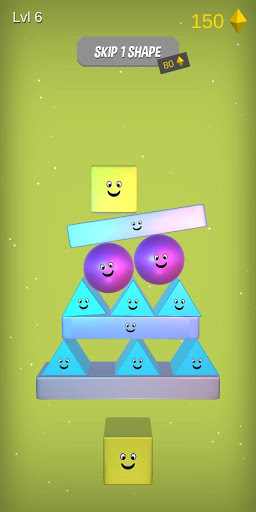 In Happy Color Stack game, you need to pay with a smiley smart shapes without making them fall. After all the puzzle is ricked, a short timer will begin to make sure the structure is stable. If any of the shape outbreaks, then the shapes will fall and game ends.