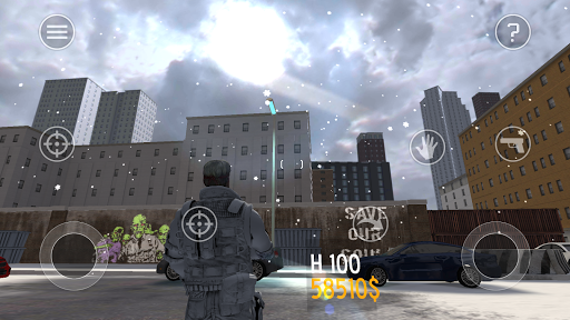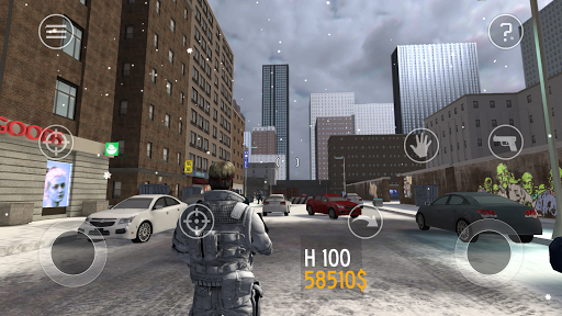 multiplayer offline / internet wifi pvp third person shooter game: Battle robot and cyborg divisions in the snow filled city