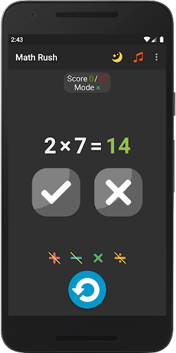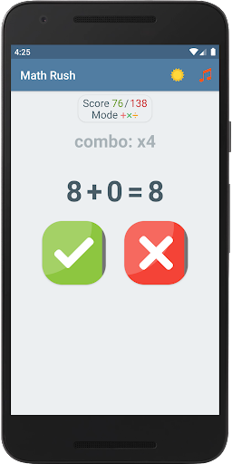 This game will allow you to train your brain, keep your mind in constant tone, develop memory and thinking. In the game, you yourself choose which examples you want to practice. For example, if you want to learn the multiplication table, then just choose examples with multiplication and play with them and the multiplication table will learn by itself, and if you fall behind in division, just choose the equations with division and play with them and you will not notice how quickly you will master division. The game has 15 modes with different combinations of equations; for each game mode, maximum points are saved, by which you can constantly observe your progress and surpass it. The game provides two themes: day and night, so that you can play comfortably at any time of the day. For great interactivity, entertainment and involvement in the game, it has a soundtrack that you can turn on or off at will.