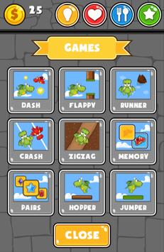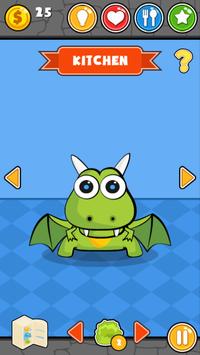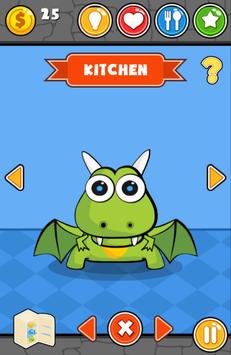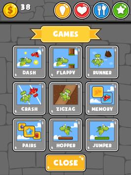 Choose from the 9 available mini games, play them and keep your virtual pet entertained. Play the dash game and fly between the red dragons, or with pairs in the unique memory game. Hop and jump on platforms, or glide between cliffs. The mini games can be played for hours, and they are all unique and addicting. Playing games give you the points which you can use to buy food, and many different outfits. Use the healing potion in the bathroom if the dragon is too low on health.