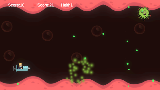 syringe: when you touch the the screen with finger you shooting and kill all enemies