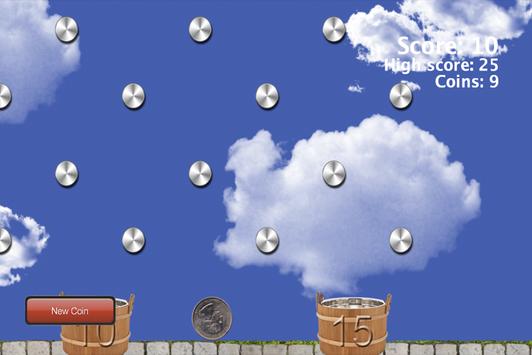 Coins game is a game were you drop the quarter and try to hit it into the money buckets. 5 point bucket, 10 point bucket and 15 point bucket. If you can score 5 times you will get two more coins and if you score 5 more you get another 4 coins. Try to beat your own score.