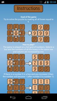 Improve your mind age with the Score Nine game.Score Nine is an amazing puzzle mind game (brain training) and the goal is to solve the puzzle by making all boxes of the grid equal to nine.