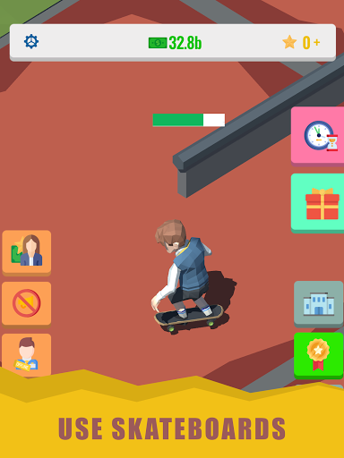 Expand your park for kids, open new areas, and upgrade existing ones to accommodate more kids. Open new activities and make sure to choose the best business strategy to become rich. Earn money while you are offline and keep visiting families happy. Open different types of skateparks like bowl or street plaza.
