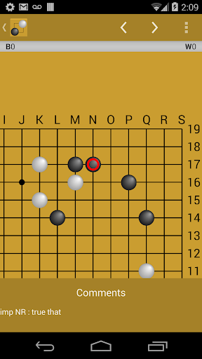 Go is a simple yet deep strategic board game thought to have been invented some 2500 years ago in China. Today the game is played by both amateurs and professionals alike world wide. igo is a simple yet powerful Go app that will allow users to play a game of Go against another player. The app is also capable of reading .sgf (Smart Game Format, a popular format in which Go games are saved) files so you can review your games or other player's games on the go on your Android device.