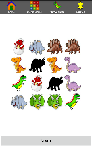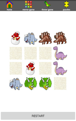 Dinosaur Match/Memo Game - The memory style game will help improve your memory by finding the matching pairs of dinosaur pictures while having loads of fun. A new game every time you restart.