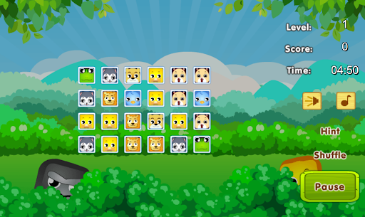 Your task in this cute Mahjong connect game is to find pairs and remove all animals from the playing field. The path between two animals can't have more than two 90 degree angles. Play for a high score and make combinations as fast as possible to earn bonus points. How many levels can you finish before the time runs out?
