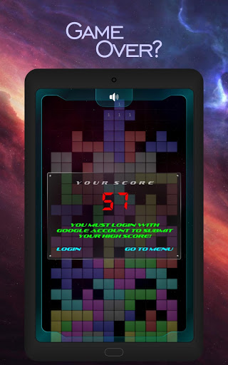 The legend game has returned with improved galaxy style. It's causes high fun and competition! Your task is to create horizontal lines with the given blocks. When you make a full horizontal block, it is disappeared from the screen and you earn some points. If there is no room for the given block in the screen, the game is over. You have to think twice before you put the blocks. Choose the best position for each block depending on their shapes. It is really a casual puzzle game for your free time. You can't stop playing it once you start the game! From now on, let’s enjoy a simple and addictive block puzzle game!