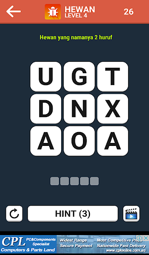 Mudah untuk bermain. Jika tidak bisa, manfaatkan fasilitas hint untuk membuka satu persatu huruf.! Anda dapat menambah saldo hint dengan menonton video ads.
