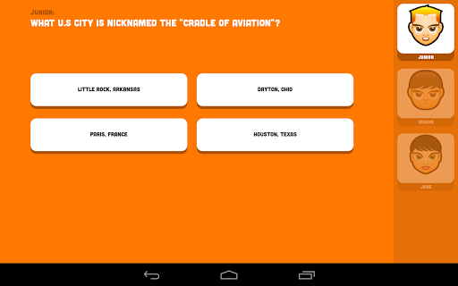 Pick your own personal avatar then test your general knowledge against that of your friends to see who is left standing and who gets blown to pieces. Up to three players can blow their buddies up for