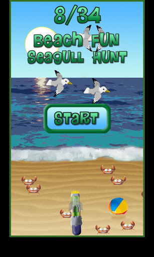 Beach Fun Seagull Hunt is a small frustrating game, where you have to keep a beach ball in the air and make it hit the seagulls flying overhead, for points. This is done by hitting a beach ball with water from a super soaker.