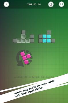 Rotate, drag and fill the white blocks with Candy styled Blocks!