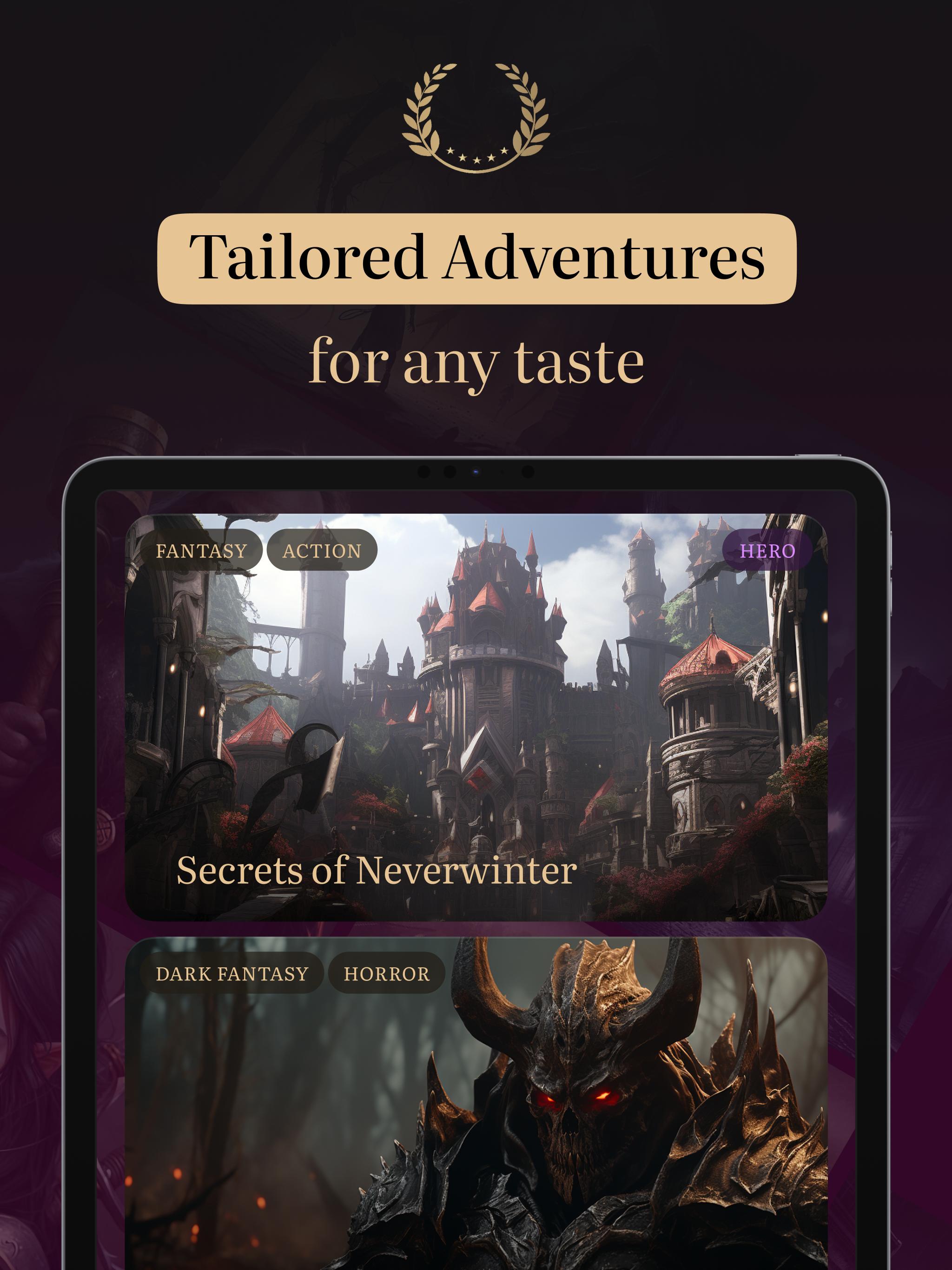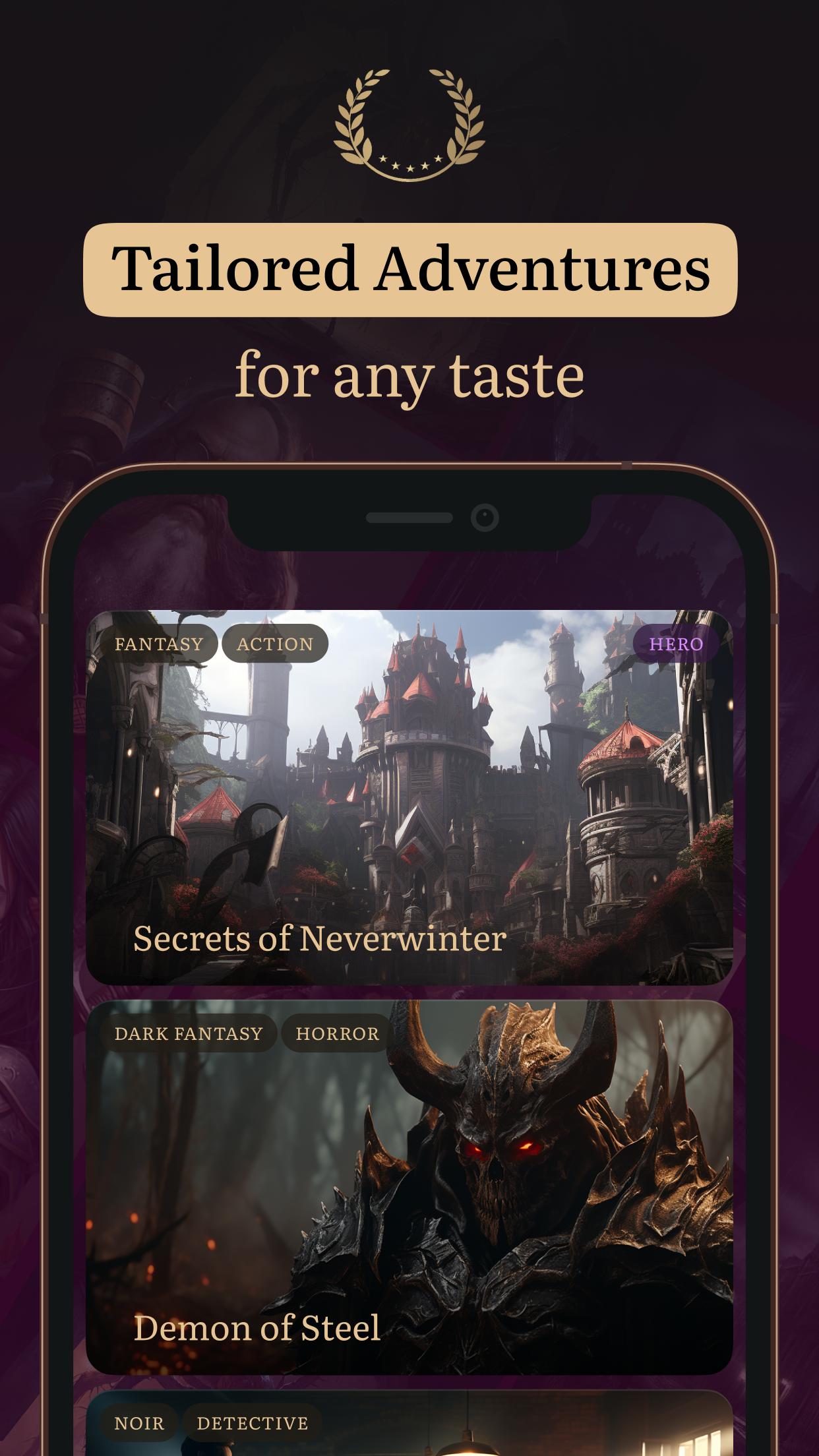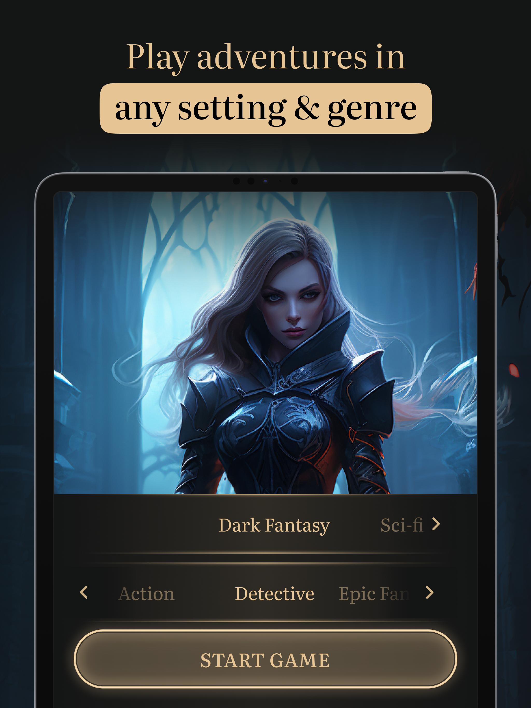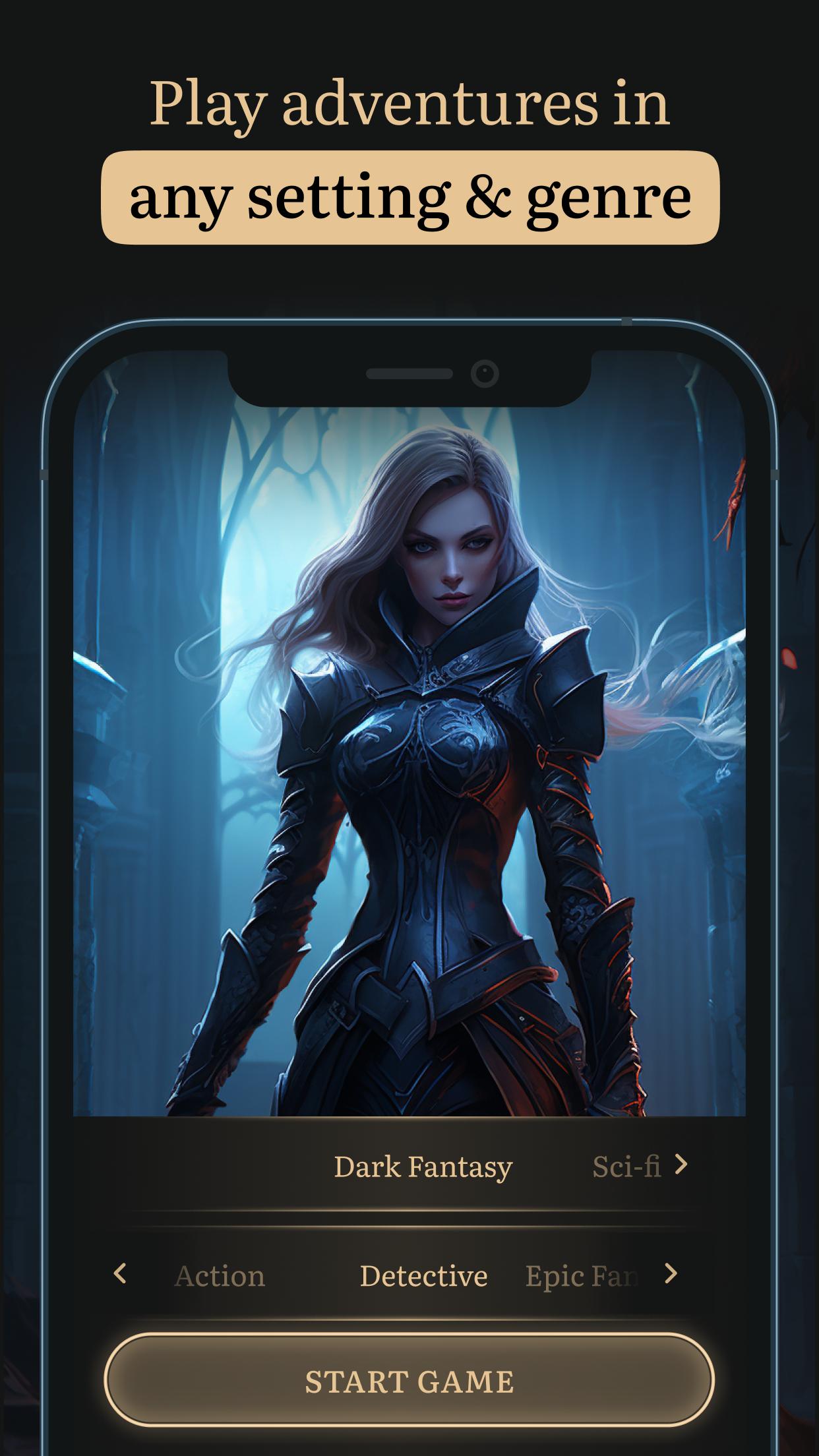 Embark on an epic adventure in InFables, the text-based RPG that combines immersive AI story generator with limitless choices. With InFables Story Game RPG you'll immerse yourself in immersive storytelling with an AI story generator that will generate tons of opportunities for your character's interactive story games adventure. Unleash your imagination as you traverse the story game universe teeming with cyberpunk intrigue, dark fantasy realms, AI dungeon or thrilling noir mysteries. Prepare to be captivated by magical landscapes, encounter swashbuckling pirates, explore enchanting anime story games worlds and much more at infinite interactive stories you create on the go with the power of AI.