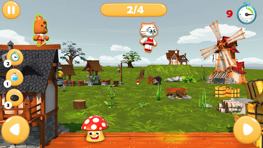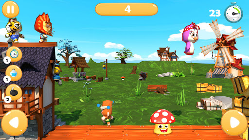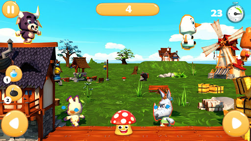 In an ancient magical forest, everyone was living happily but one day, a giant barbarian werewolf and his bomber owl minion 💣 threatened and attacked all the cute little innocent animals. Now all the creatures are in danger and running for survival. Fortunately there is a kind bouncy mushroom that lives on the edge of safari forest and can bounce the animals into the safe village in the rescue operation. All the animals want to jump on mushroom but only you can control mushroom and make animals escape. During the survival mission, werewolf can send bomber owl to bomb the mushroom to damage and destroy cute little animals. You can use bomb diffuse power up to fail the attempt. Since these little animals are in a rush, you have to do survival operation in a hurry within the time limit. On the village side, there are beautiful stacks of hay where innocent creatures can land safely.