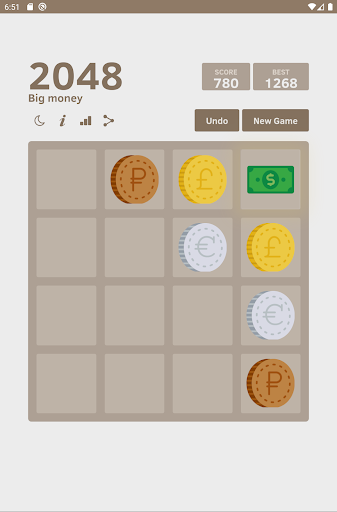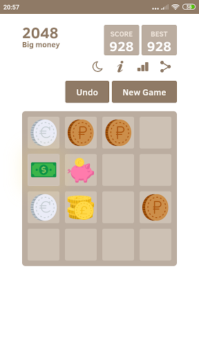 Legendary 2048 game with money icons 🤑! New funny money icons let you enjoy the gameplay and train your brain! 💪🧠👍