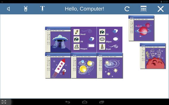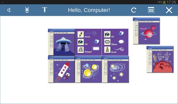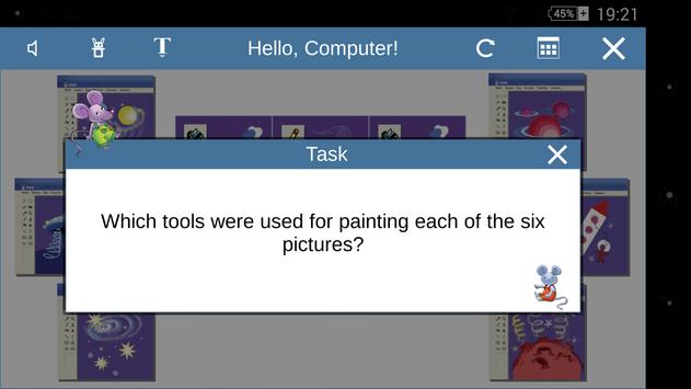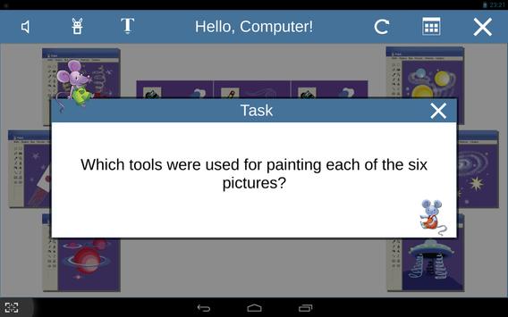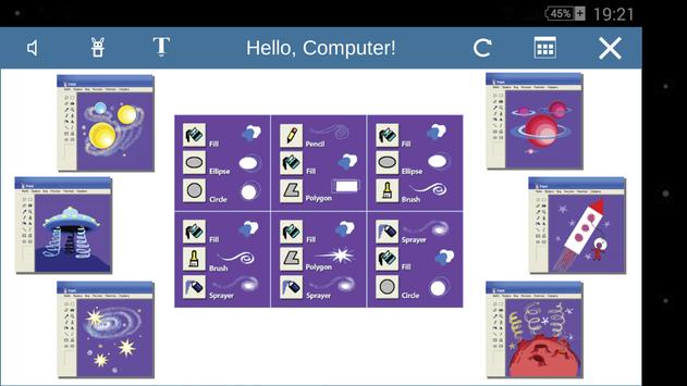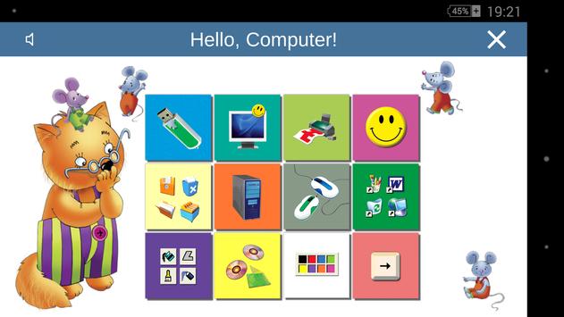Parents and teachers could continuously argue on the appropriate time for children to start using computers. But for modern generation computer is a common and familiar way to get information and communicate with the world. "Hello, Computer!" is our attempt to get young players train their memory, imagination, and logical thinking, while operating with familiar computer devices and symbols. After completing each of 12 assignments, a child can check his or her work by turning the cards and assemble an amusing picture, which shows a computer device and its name. Let's play and learn! Authour: T.A. Barchan.