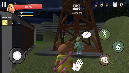 You, Bunny, Pony and Zizzy has build a strong base where you are safe from the infected Piggy(s) outside. However, Siren Head has destroyed your camp gate. Now you are exposed to the danger. You should take your revenge on Siren head!