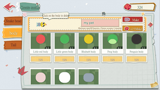 -The snake consists of a snake head, a snake body, and a snake tail. Combine a snake according to your preferences!